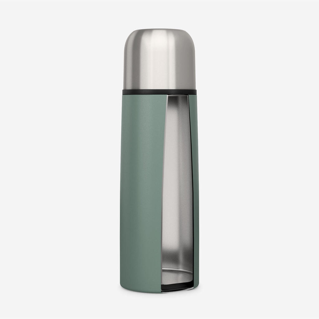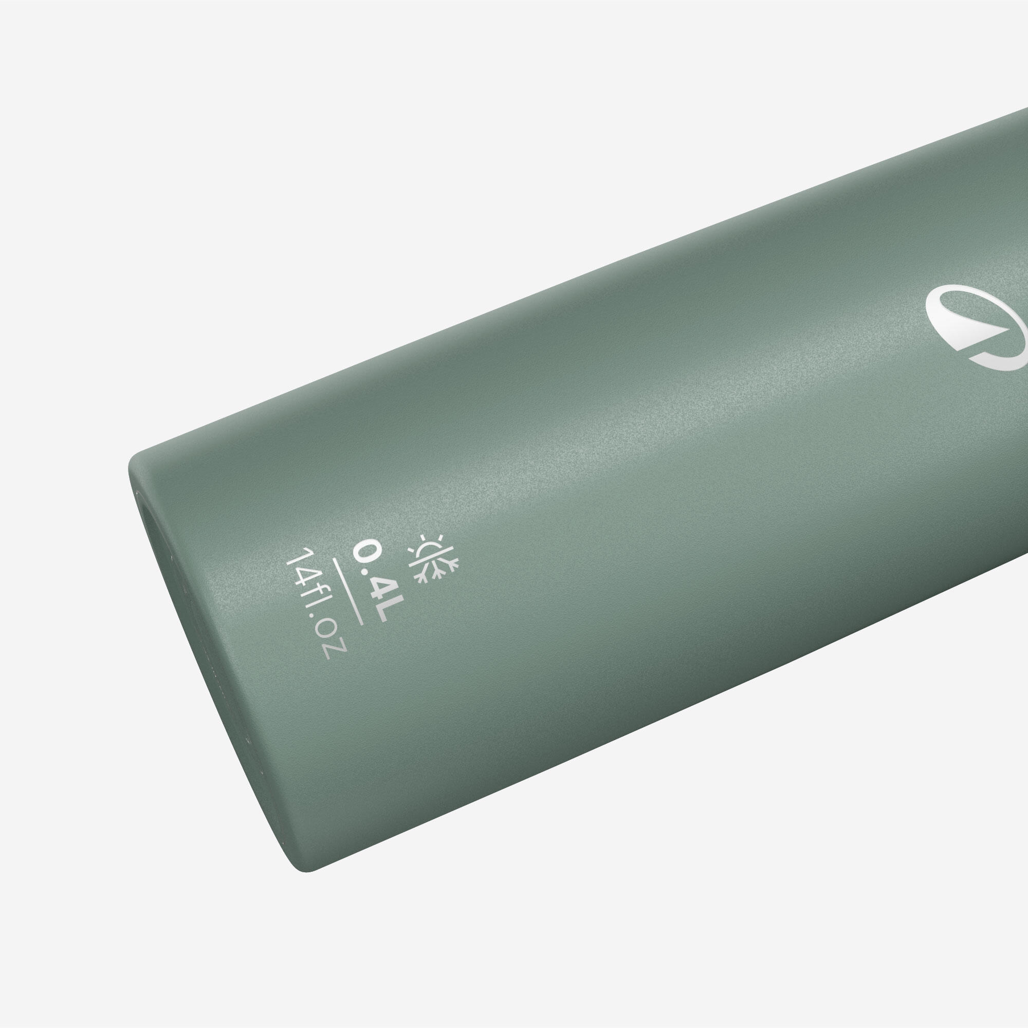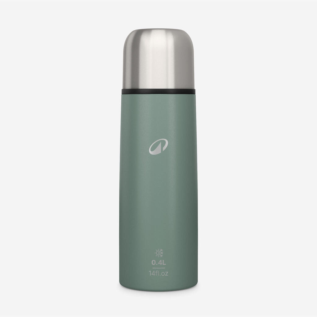 Conservez vos boissons chaudes ou froides durant plusieurs heures en randonnée. Cette bouteille isotherme de 0,4 L, solide et isolante, possède un bouchon s'ouvrant en un quart de tour et un gobelet.