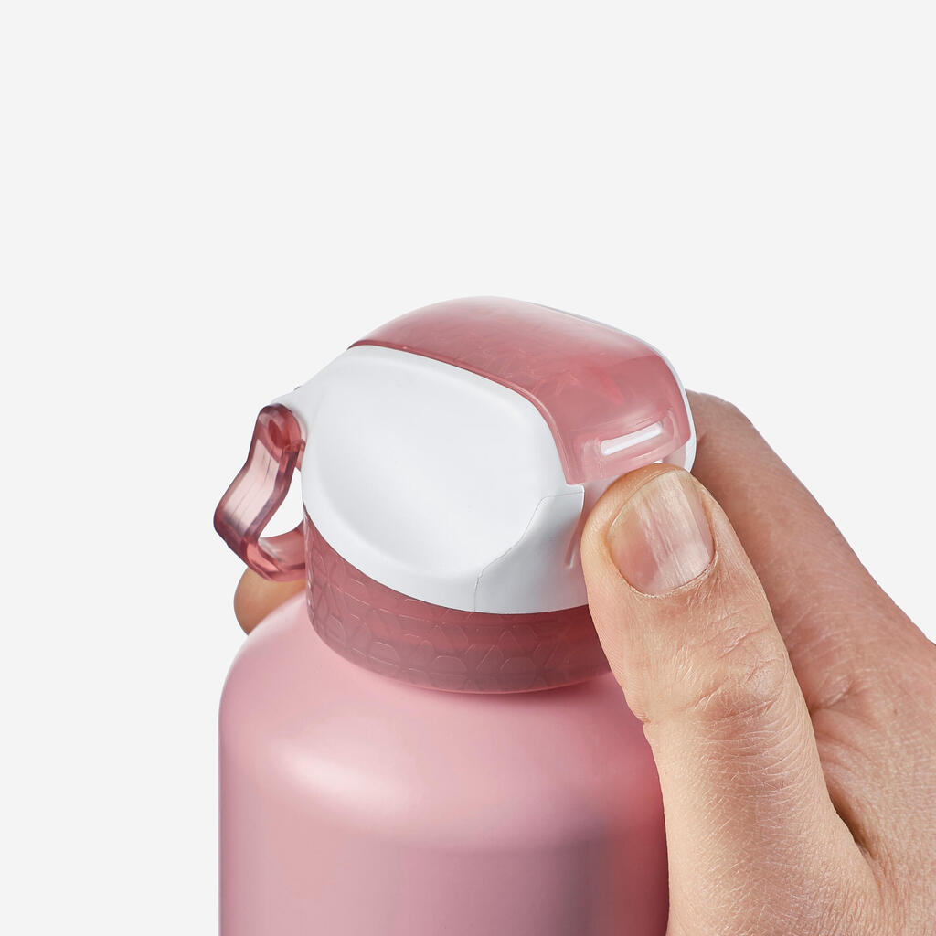 Cette gourde enfant de 0,6L en aluminium facilite l'hydratation en randonnée. Son bouchon instantané s'ouvre à une main et sa pipette permet de boire la tête droite. Elle est solide et légère.