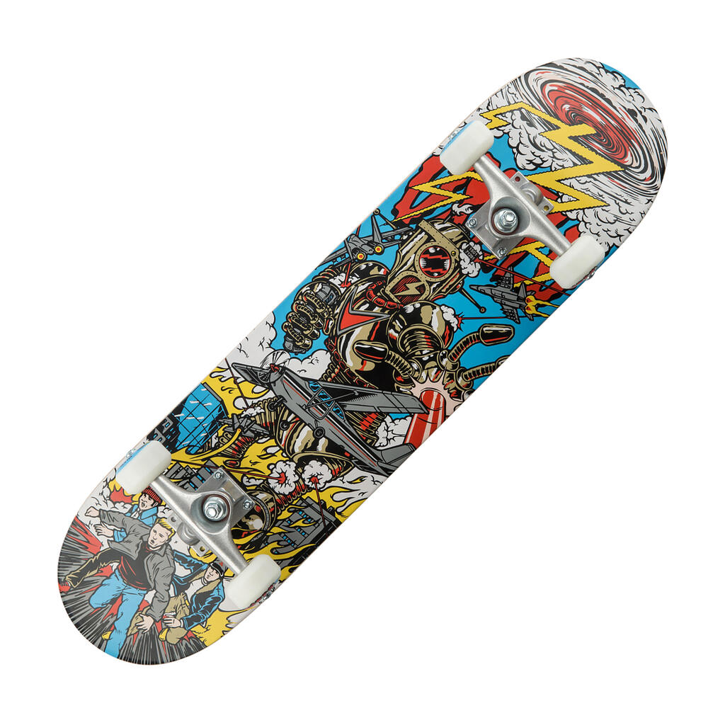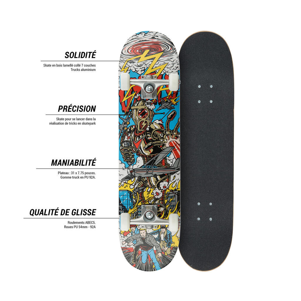 Un skate pas cher et solide pour apprendre à réaliser ses 1ère figures en skate (ne convient pas aux skateurs de moins d'1m30)