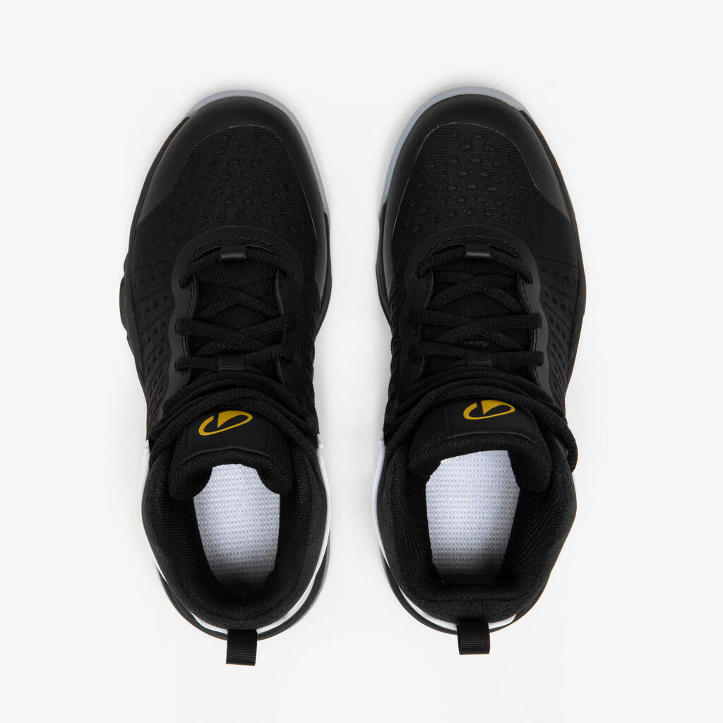 Conçues pour une pratique confirmée, ces chaussures de basket offrent un amorti qui absorbe l’impact au sol et restitue l’énergie. Leur tige montante assure un bon maintien de la cheville.