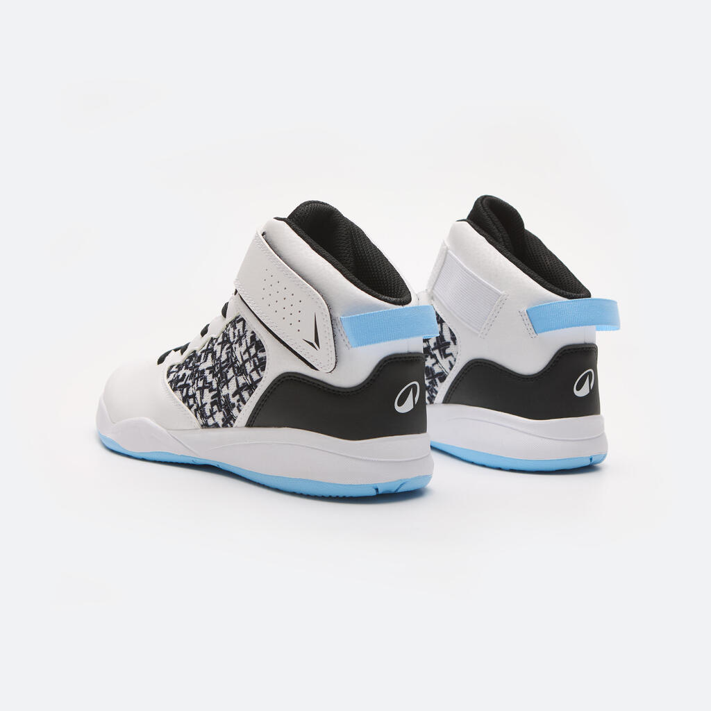 Cette chaussure de basketball pour enfant a été conçue pour les jeunes joueurs ou joueuses débutants pratiquant le basketball.