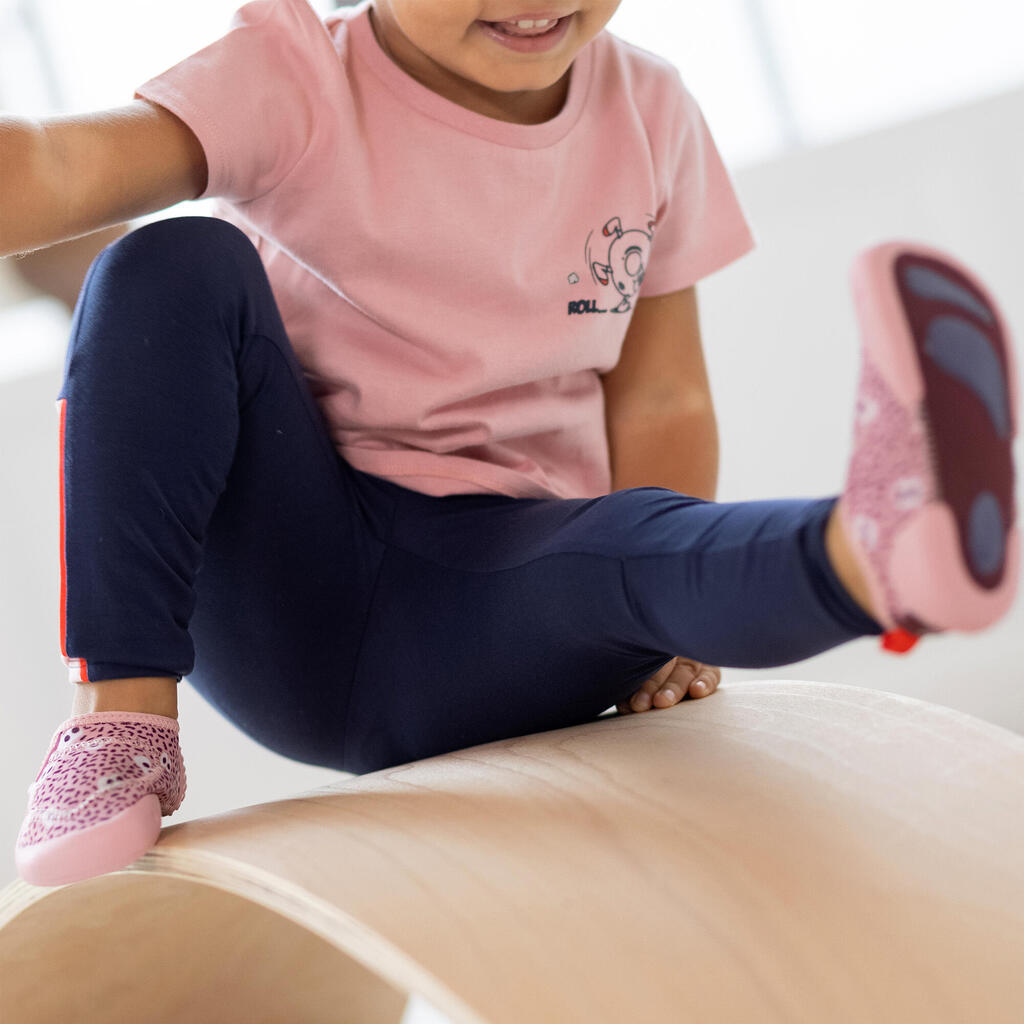 Marcher pieds nus est meilleur pour les bébés, cela permet l’apprentissage et la reconnaissance de sensations tactiles. Les nerfs situés sous le pied aident à déterminer où le poids du corps devra être réparti pour un bon équilibre. Larges et souples, les chaussons Domyos permettent aux pieds du bébé de se développer et de se renforcer sans restriction, tout en les protégeant contre le froid ou les surfaces dangereuses. Tous nos chaussants sont adaptés à la morphologie spécifique des petits.