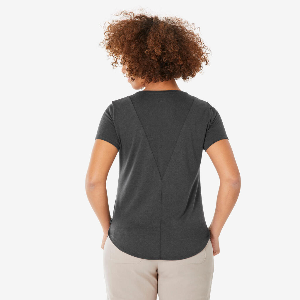 Vous randonnez régulièrement en plaine, forêt ou littoral ? Ce t-shirt facilite l'évacuation de la transpiration par temps chaud grâce à sa coupe ample et son empiècement en jacquard aéré dans le dos.