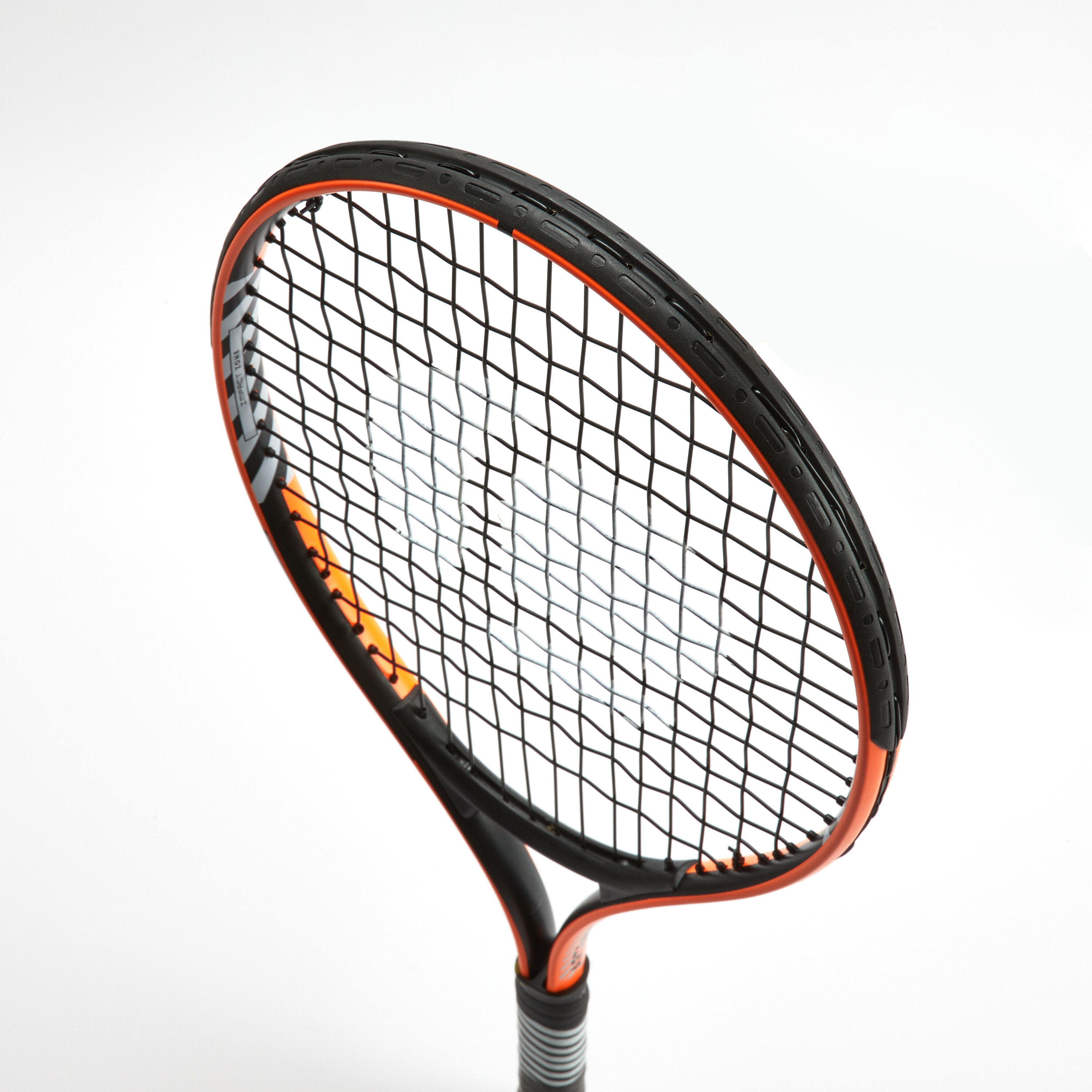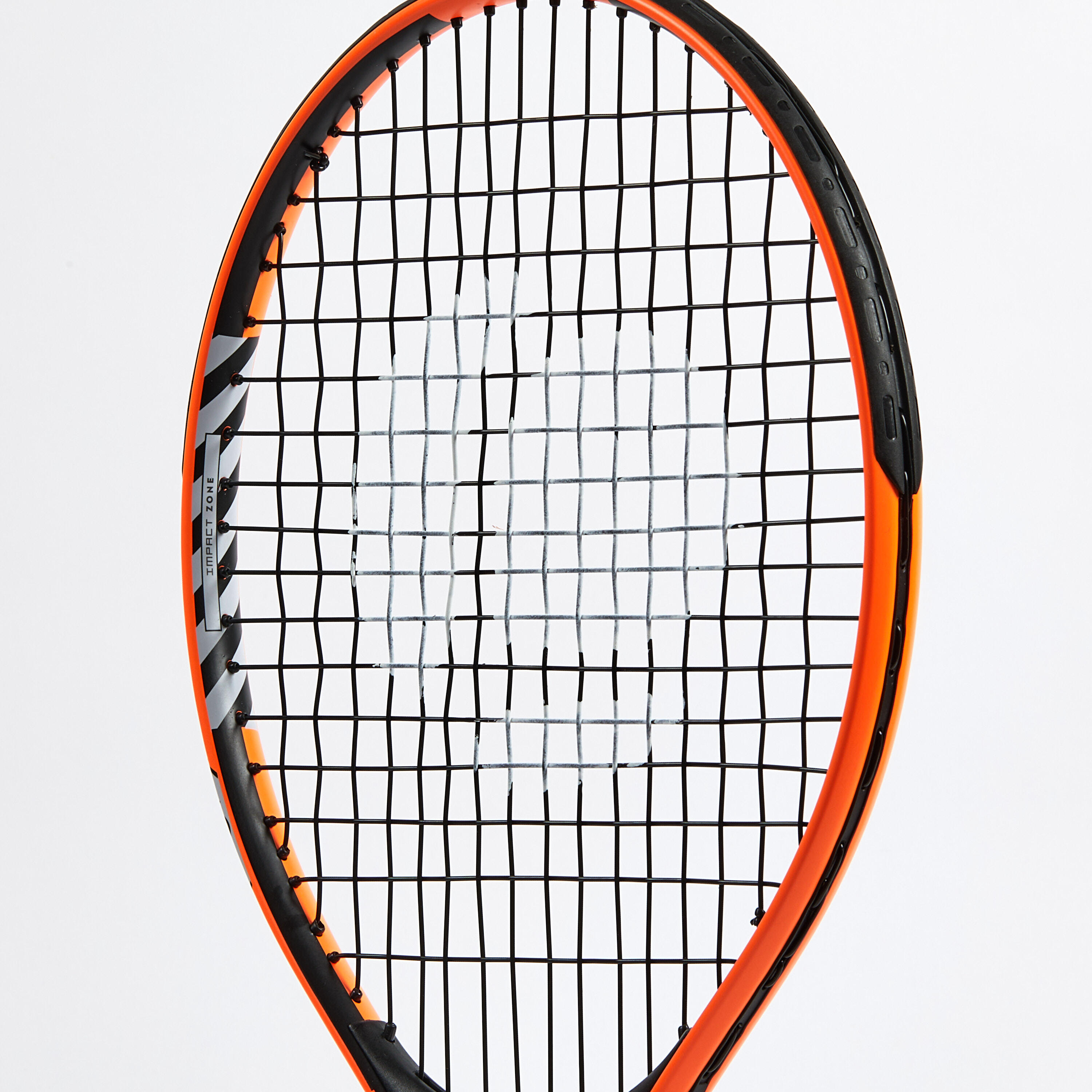 En essayant de faire frapper la balle sur ce marquage, votre enfant va se concentrer pour bien centrer la balle dans le tamis et avoir une bonne position de sa raquette.