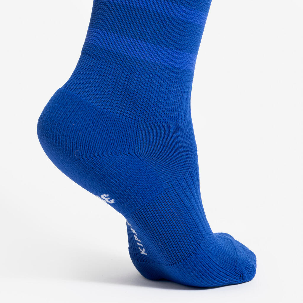 Vous cherchez des chaussettes de football résistantes pour enfant ? La bande élastique au milieu du pied assure le maintien et le tissage aéré permet au pied de respirer en pratique régulière.