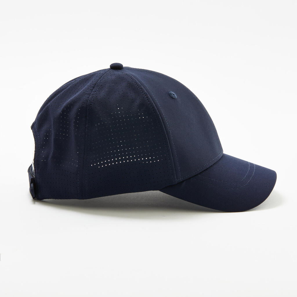 Cette casquette de tennis légère protège votre visage du soleil. Sa bande moussée et respirante bloque la transpiration pour éviter qu'elle ne coule dans vos yeux durant vos échanges.