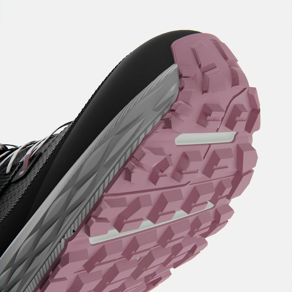 Grâce à ses crampons de 4 mm, le caoutchouc de la semelle vous apporte un compromis optimal entre accroche et adhérence (nouveau caoutchouc et design adapté) et permet une polyvalence tant sur les sentiers que sur les parties sur route, en restant confortable.