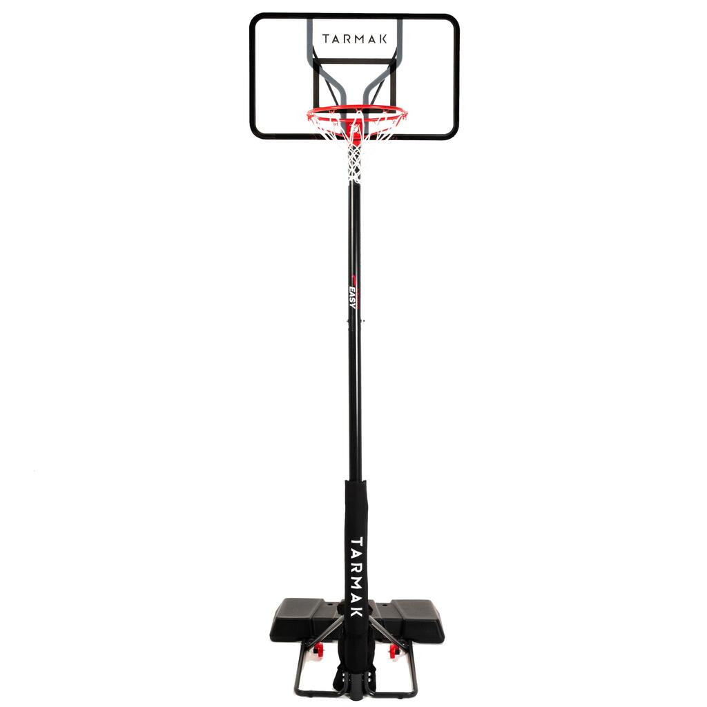 Panier de basket adulte et enfant B100 easy polycarbonate pour jouer au basketball en extérieur. Se règle sans outils sur 5 hauteurs de 2,20m à 3,05m .
