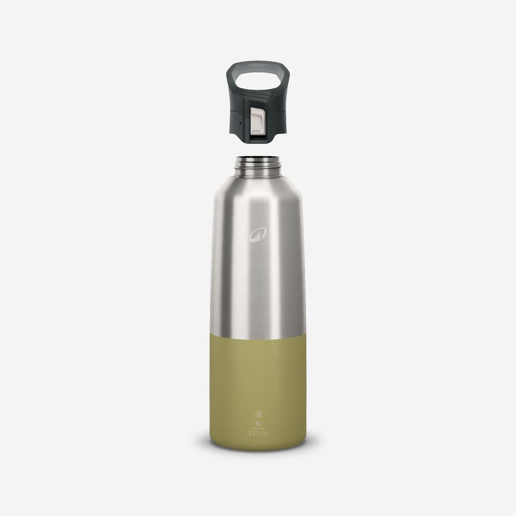 Cette bouteille isotherme en inox de 1 litre conserve vos boissons chaudes ou froides en randonnée ou au camping. Elle est légère, solide et munie d'un bouchon à ouverture rapide avec filtre intégré.