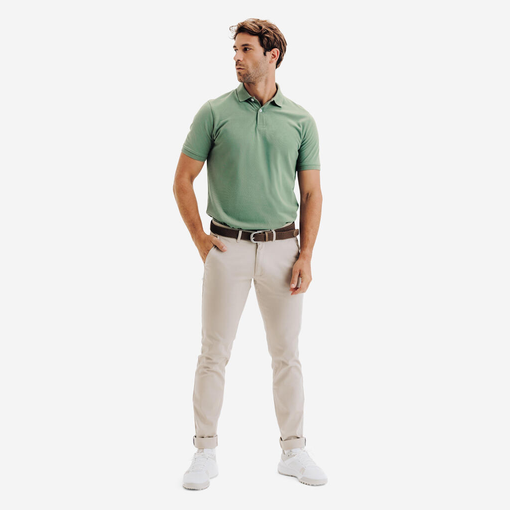 Ce polo de golf manches courtes pour homme en coton et polyester 235 g/m² est adapté pour jouer entre 10°C et 20°C. Sa maille extensible résiste aux lavages répétés pour une tenue constante.