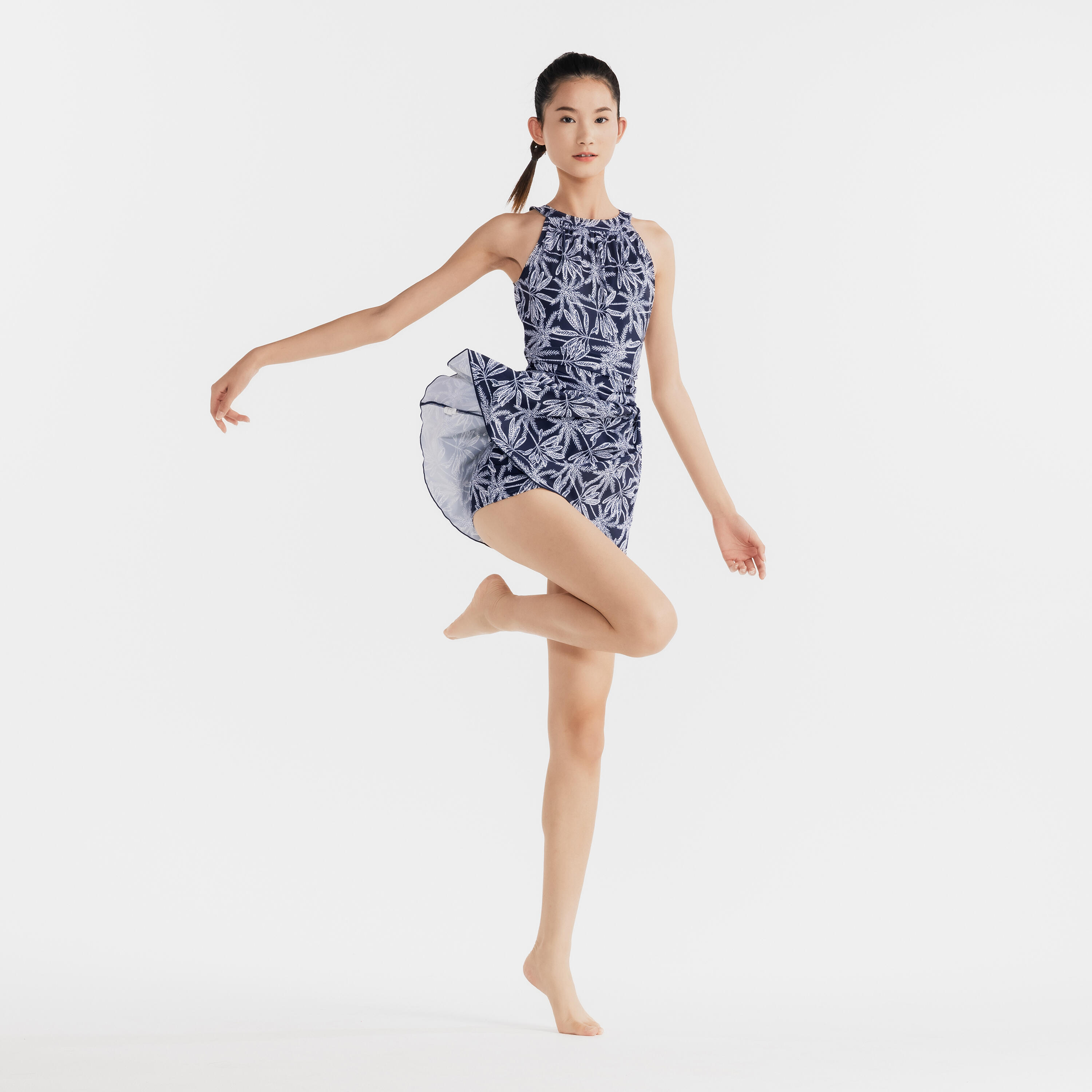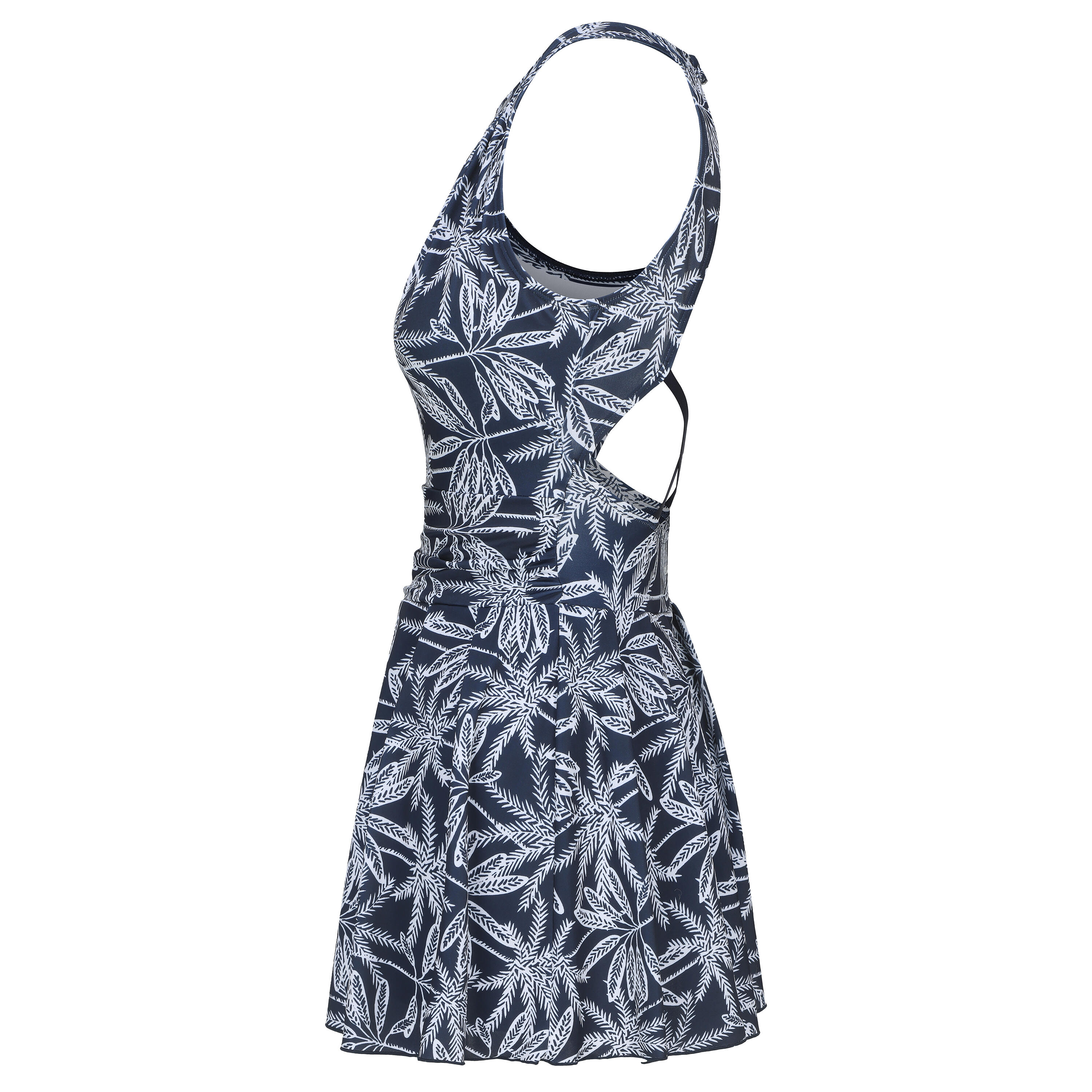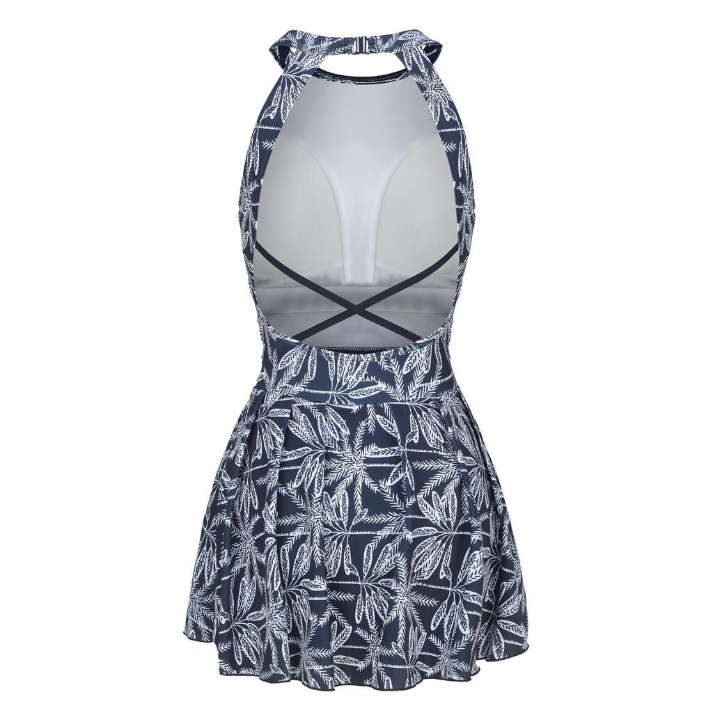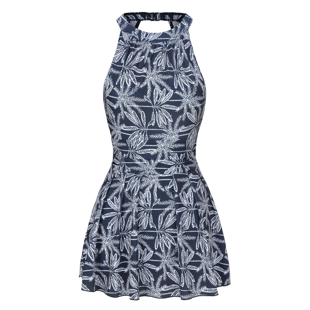 Ce maillot de bain femme 1 pièce foulard avec jupette et fronces côtés se noue dans le cou et bénéficie d'un dos fermé pour plus de tenue