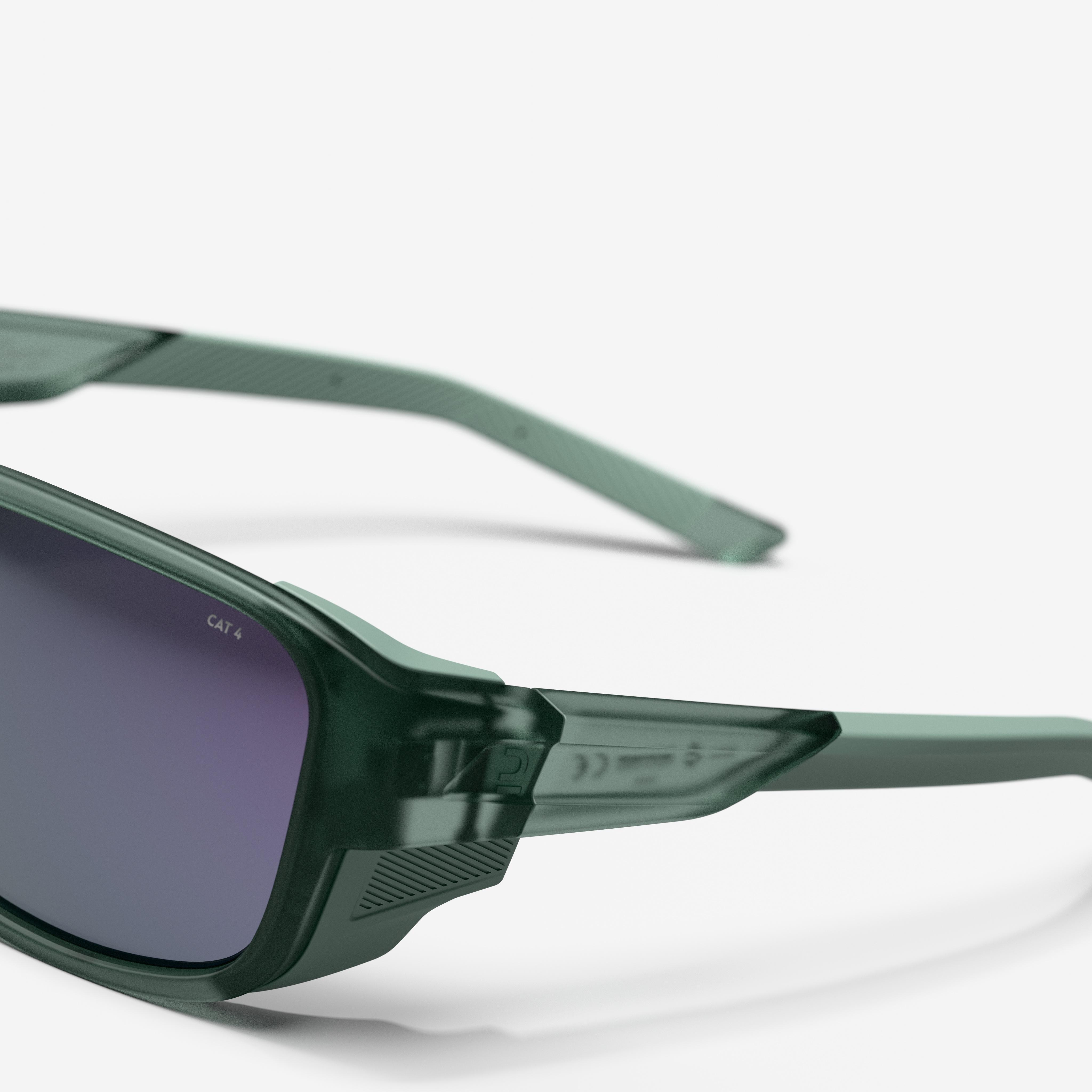 Lunettes de soleil conçues pour la randonnée. Idéales pour un usage régulier en montagne grâce à leur légèreté, aux verres polarisés et anti-UV. Catégorie 4.