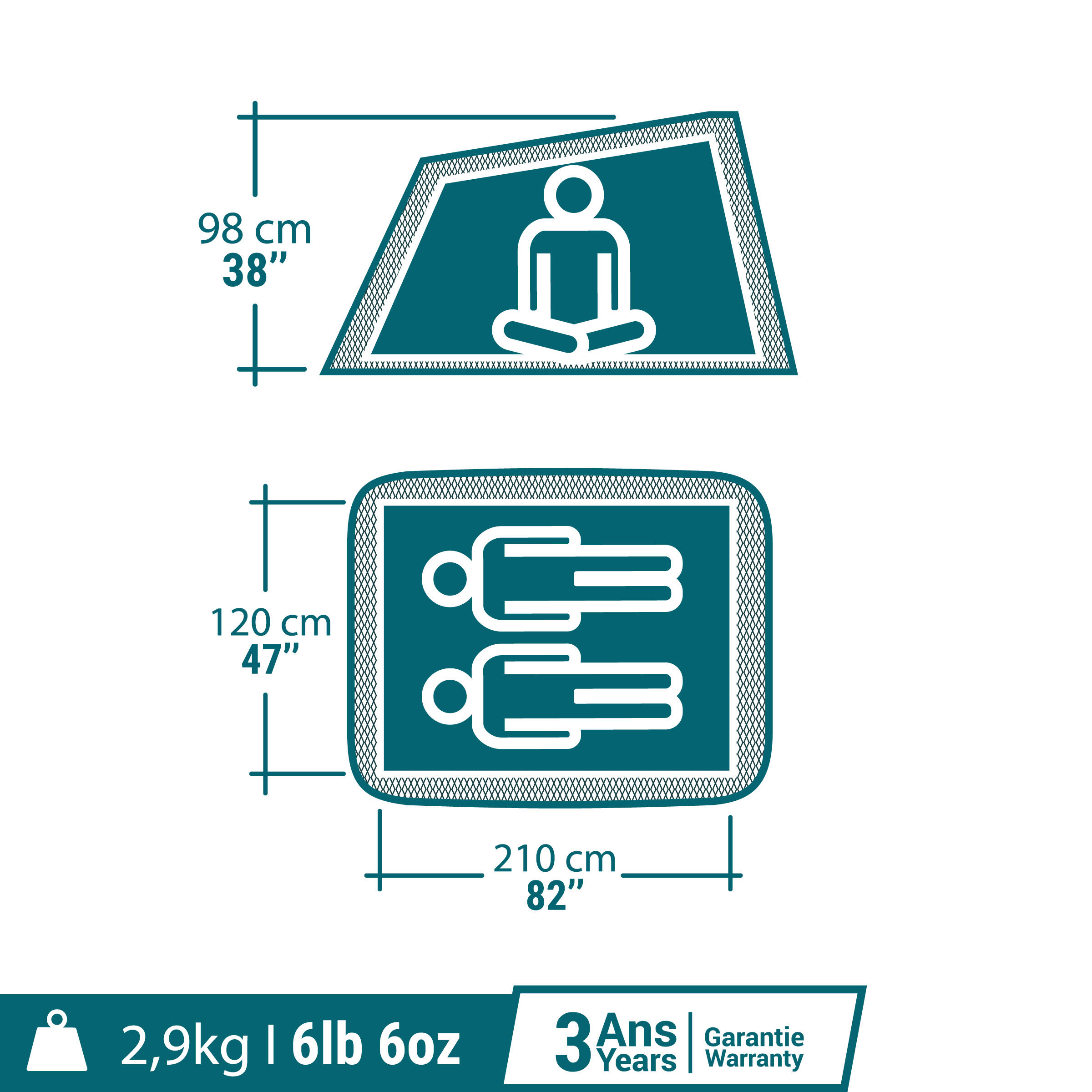 Tente conseillée avec matelas autogonflants ou matelas de trek de 60 cm de largeur maximum.