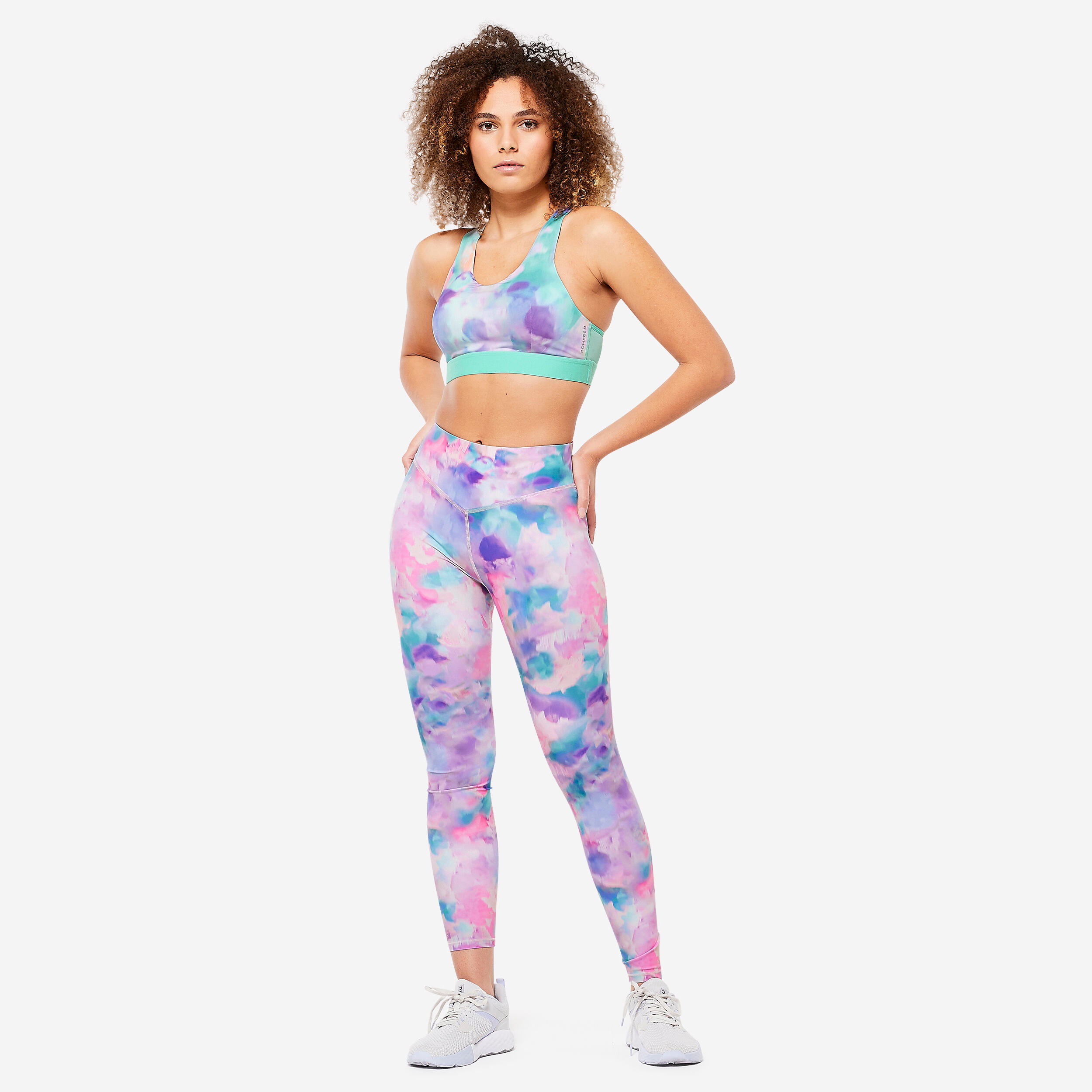 Brassière dos nageur avec coques maintien modéré Femme, imprimé pastel
