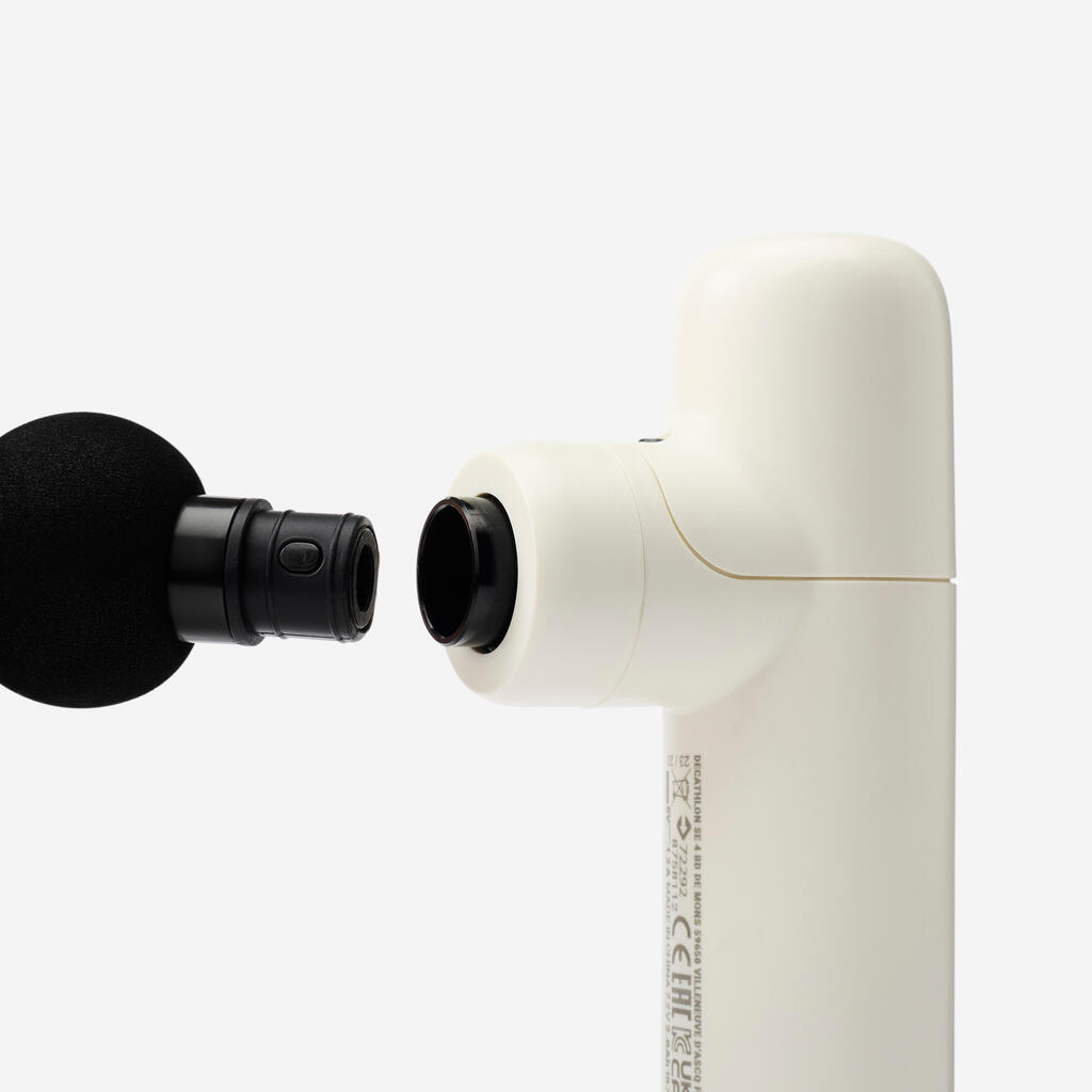 Première étape : choisir la zone à masser, et l'embout, rond ou plat. Détendez-vous, le pistolet de massage s'utilise sur un muscle décontracté, relaché. Pour le bon geste, référez-vous à notre vidéo.