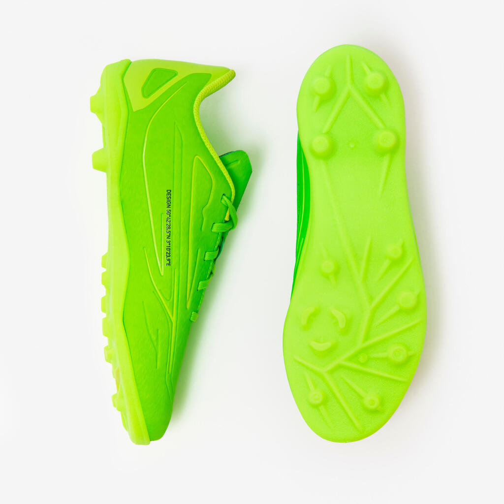 Nous avons développé cette chaussure de football 160 pour le jeune footballeur débutant, qui joue 1 à 2 fois par semaine sur terrain sec.
