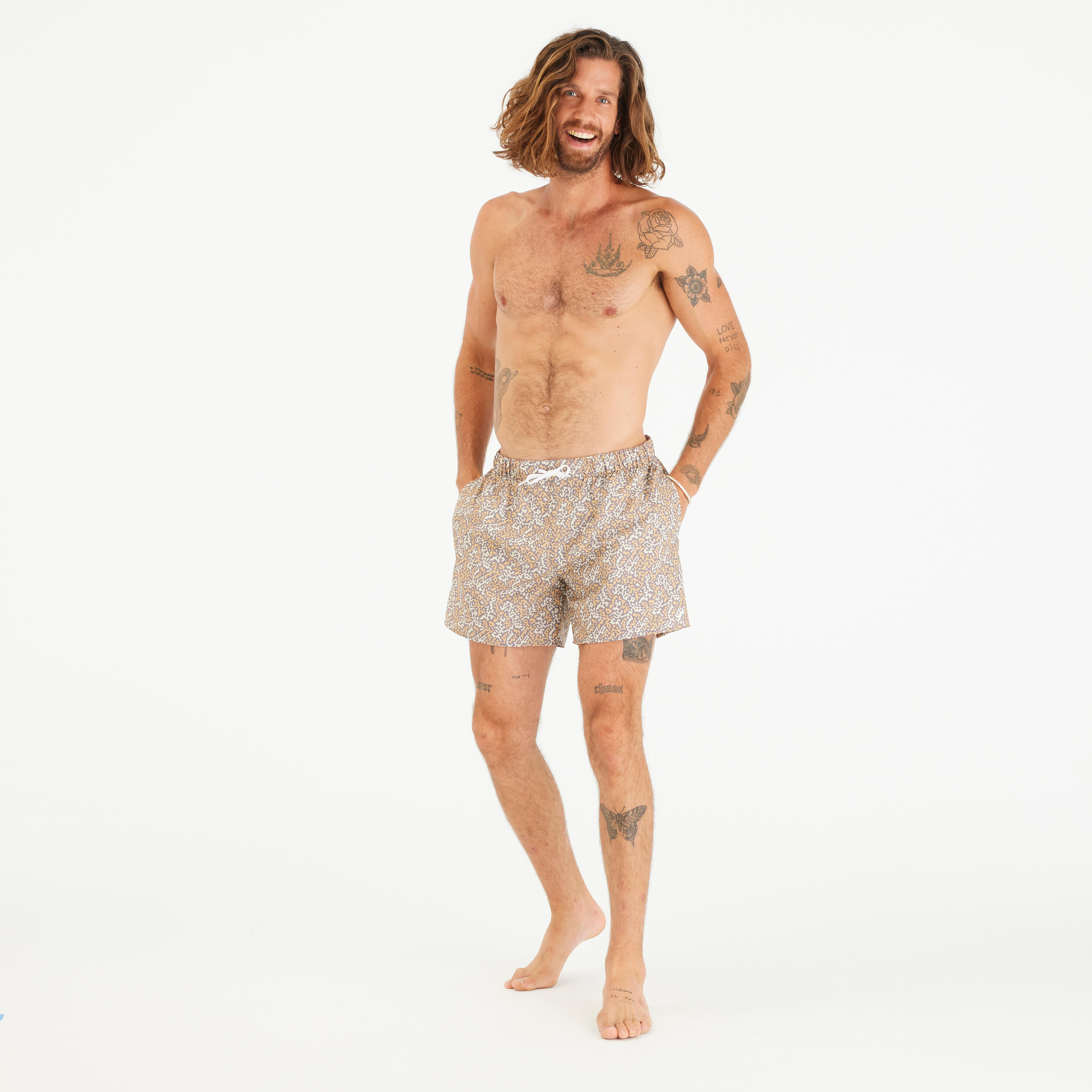 Short de bain avec ceinture élastique et cordon, coupe courte pour une bonne liberté de mouvement. Slip interne anti-irritation. 3 poches dont 2 latérales. Parfait maintien dans les vagues.