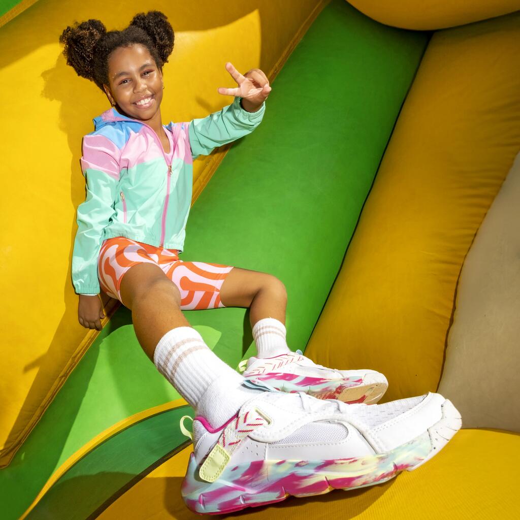 Nous avons conçu ces baskets, qui respectent le besoins des enfants en pleine croissance avec l'aide d'experts de la santé. Ce sont les plus aérées de la gamme pour un été sous le signe de l'aventure