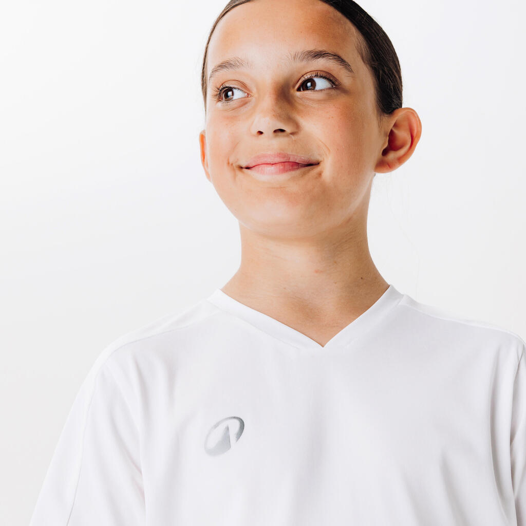 Ce maillot de football mixte accompagne les premiers pas de votre enfant sur le terrain. Son composant textile léger assure une évacuation de la transpiration.