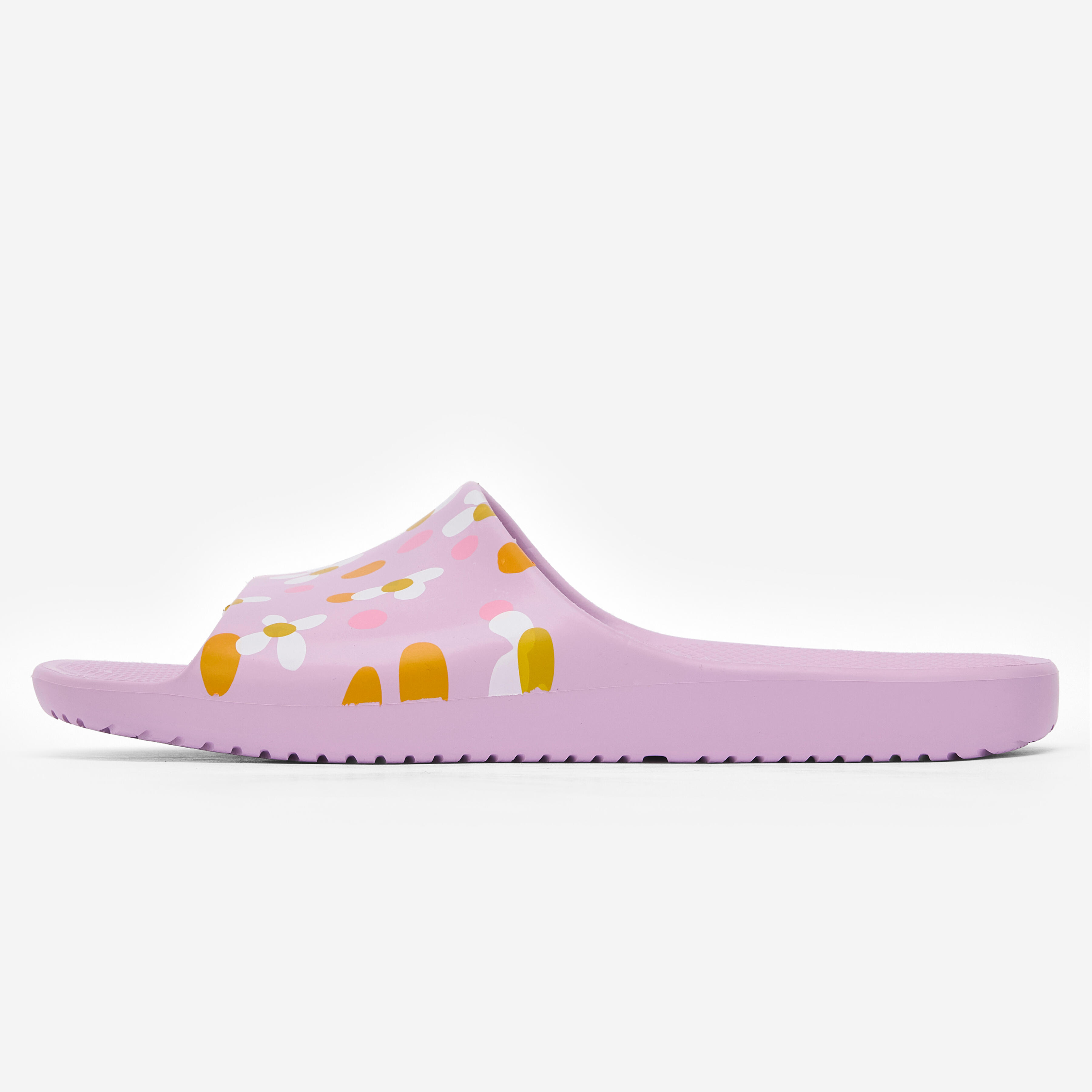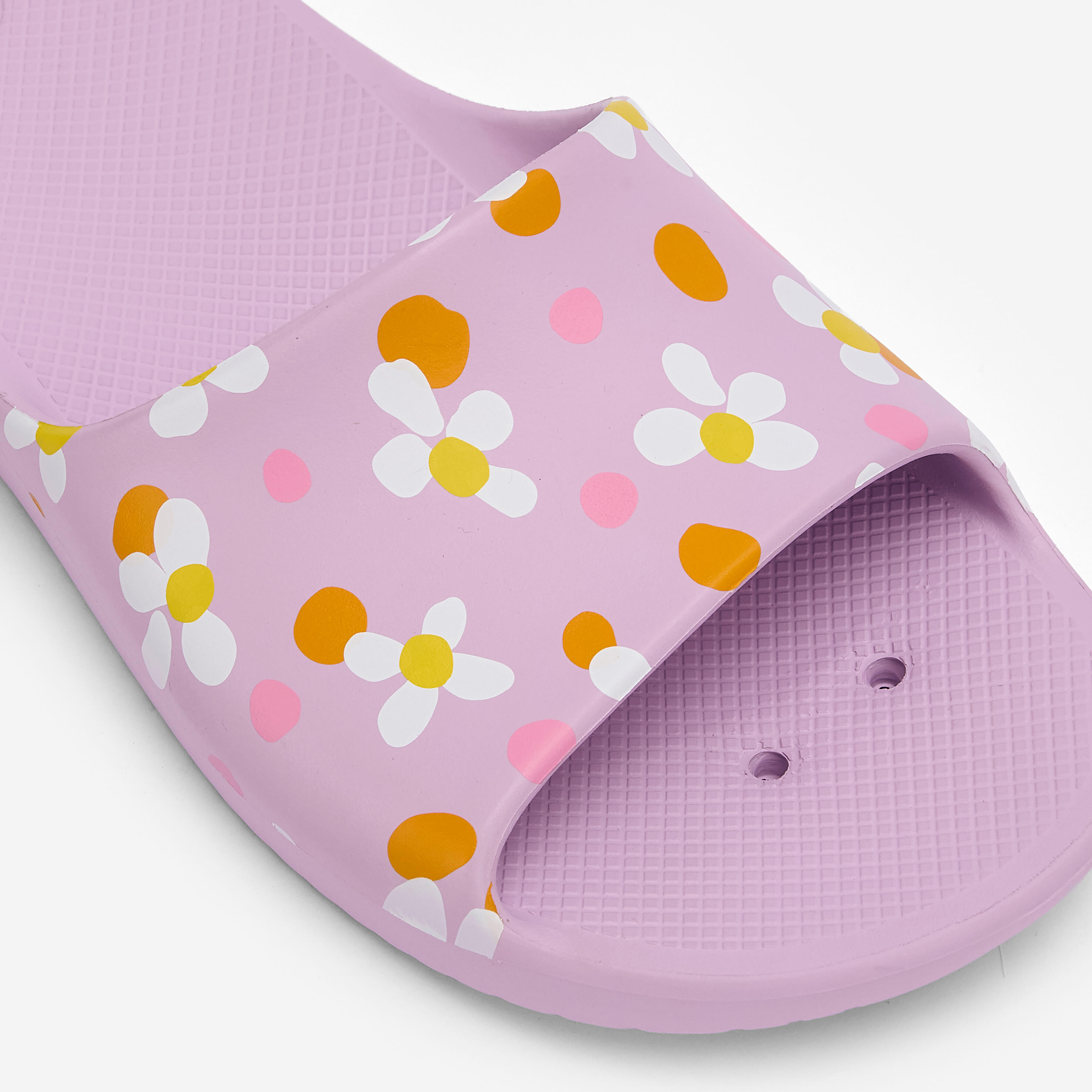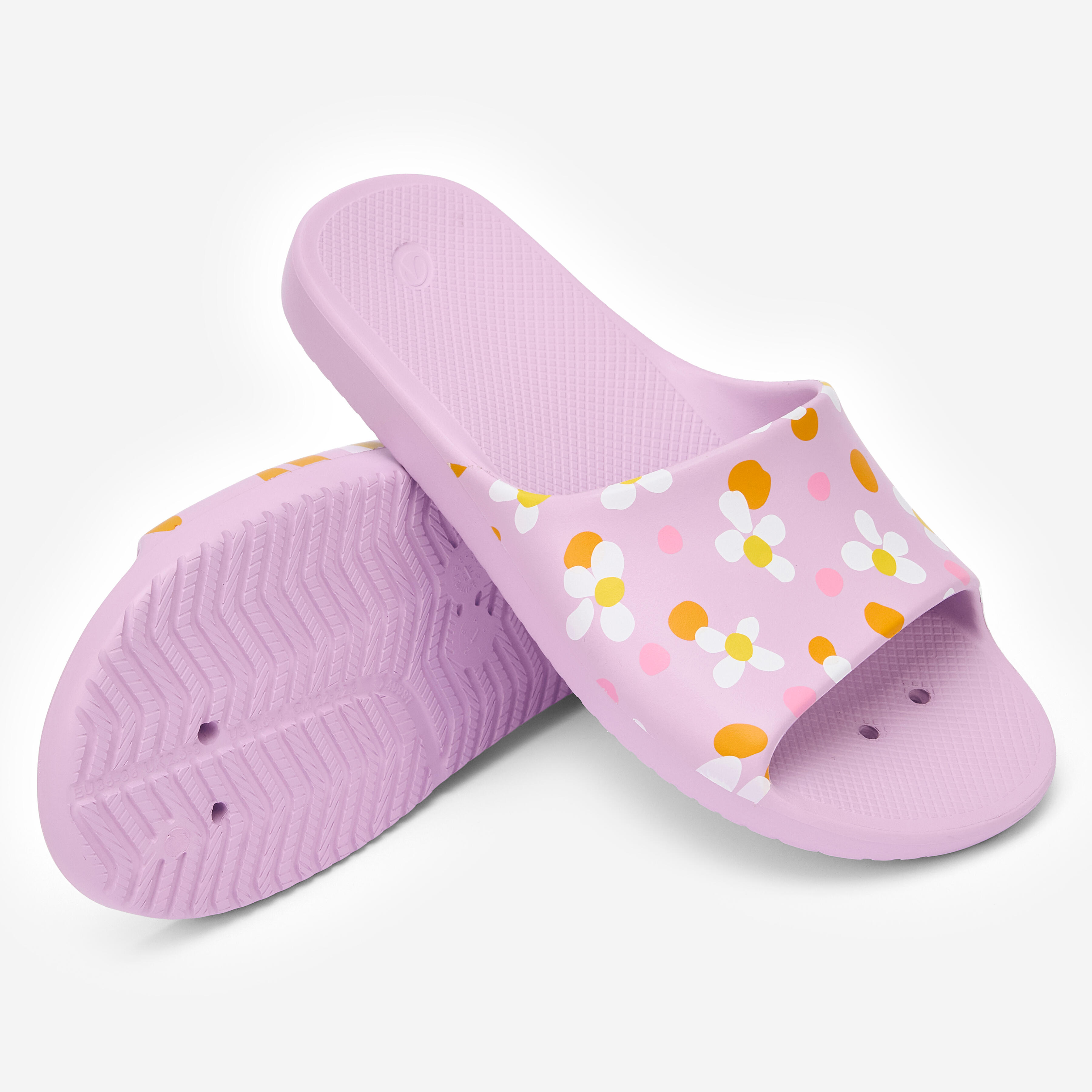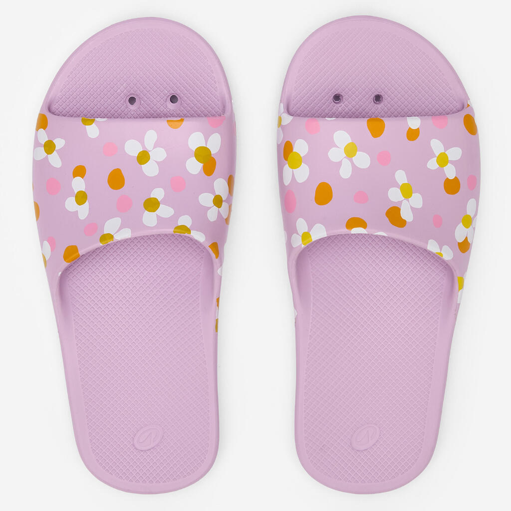 Faciles à enfiler, ces claquettes de piscine pour enfant évacuent l'eau par leur semelle perforée et assurent une bonne adhérence sur les sols lisses et humides.
