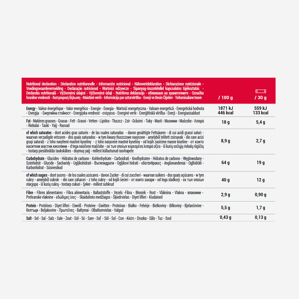Nos sportifs gourmands ont conçu cette barre de céréales enrobée pour vos activités d'intensité moyenne.