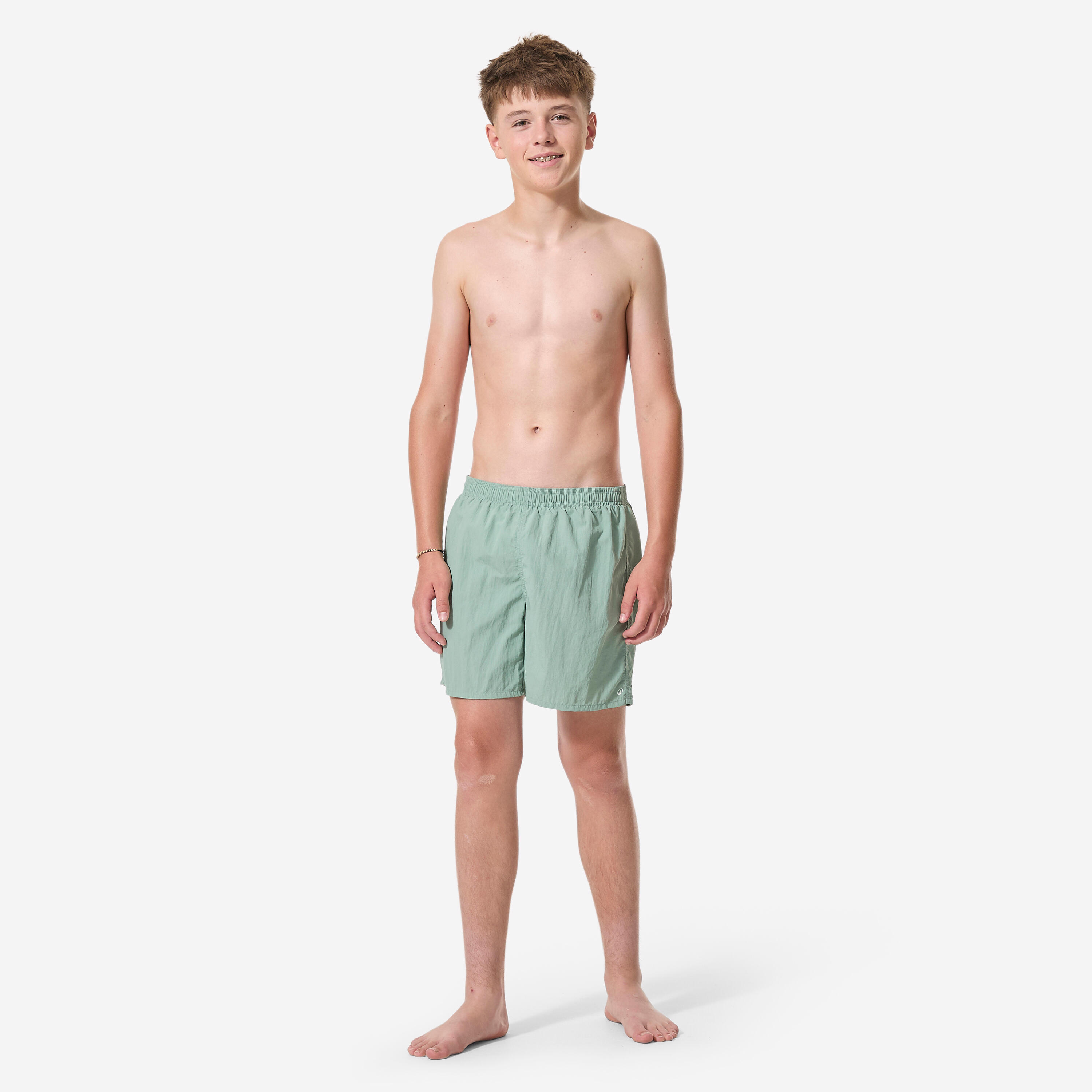 Pour la natation, les loisirs ou les vacances, ce short de bain uni très résistant au chlore conviendra aux jeunes nageurs en quête de confort et de simplicité.