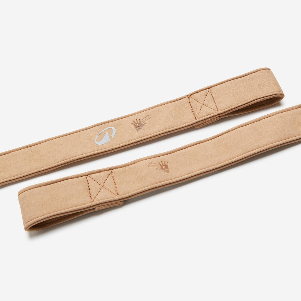 Ces sangles de tirage supportent des charges jusqu'à 200 kg lors de vos soulevés de terre. Le grip en caoutchouc évite le glissement sur la barre. La suédine protège vos poignets des irritations.