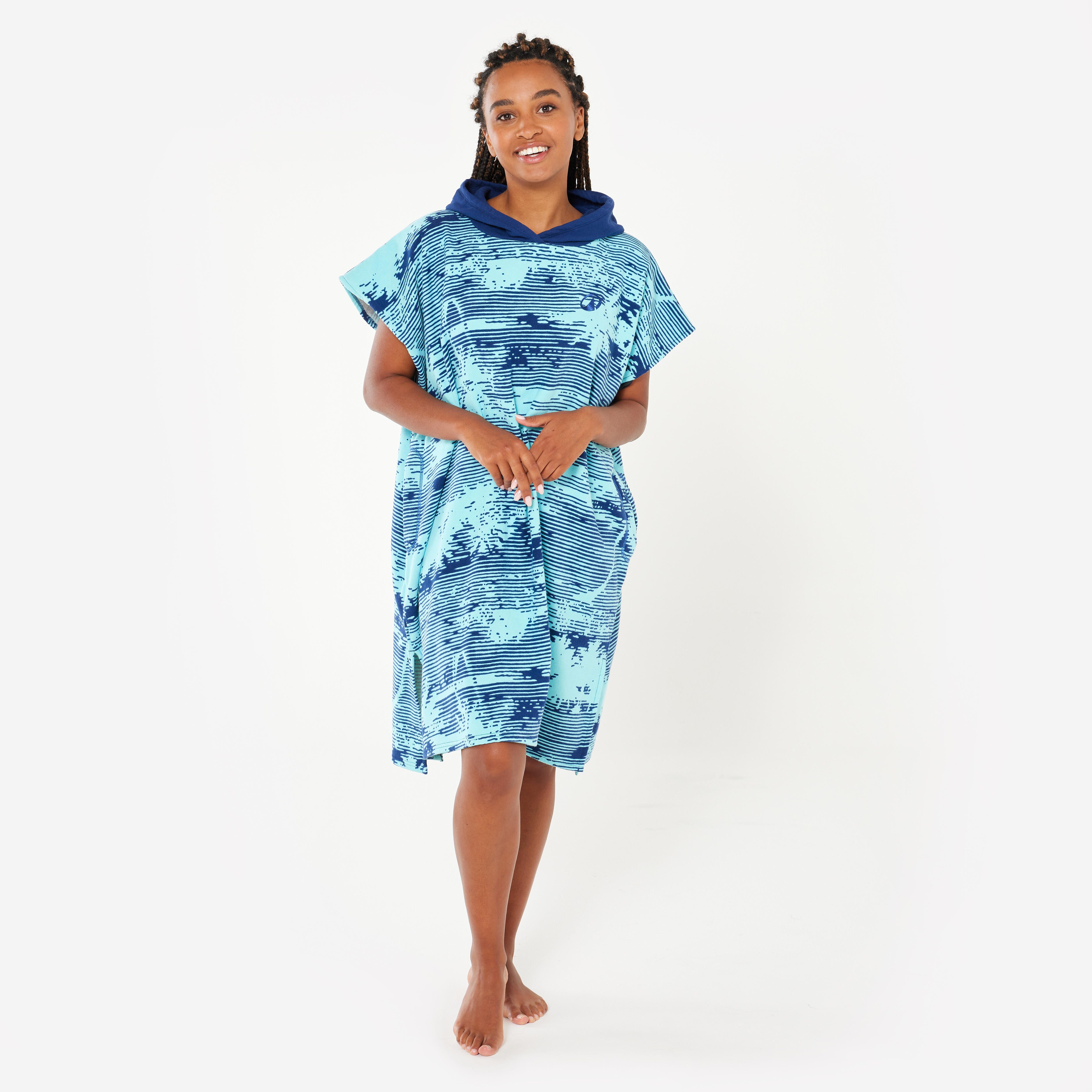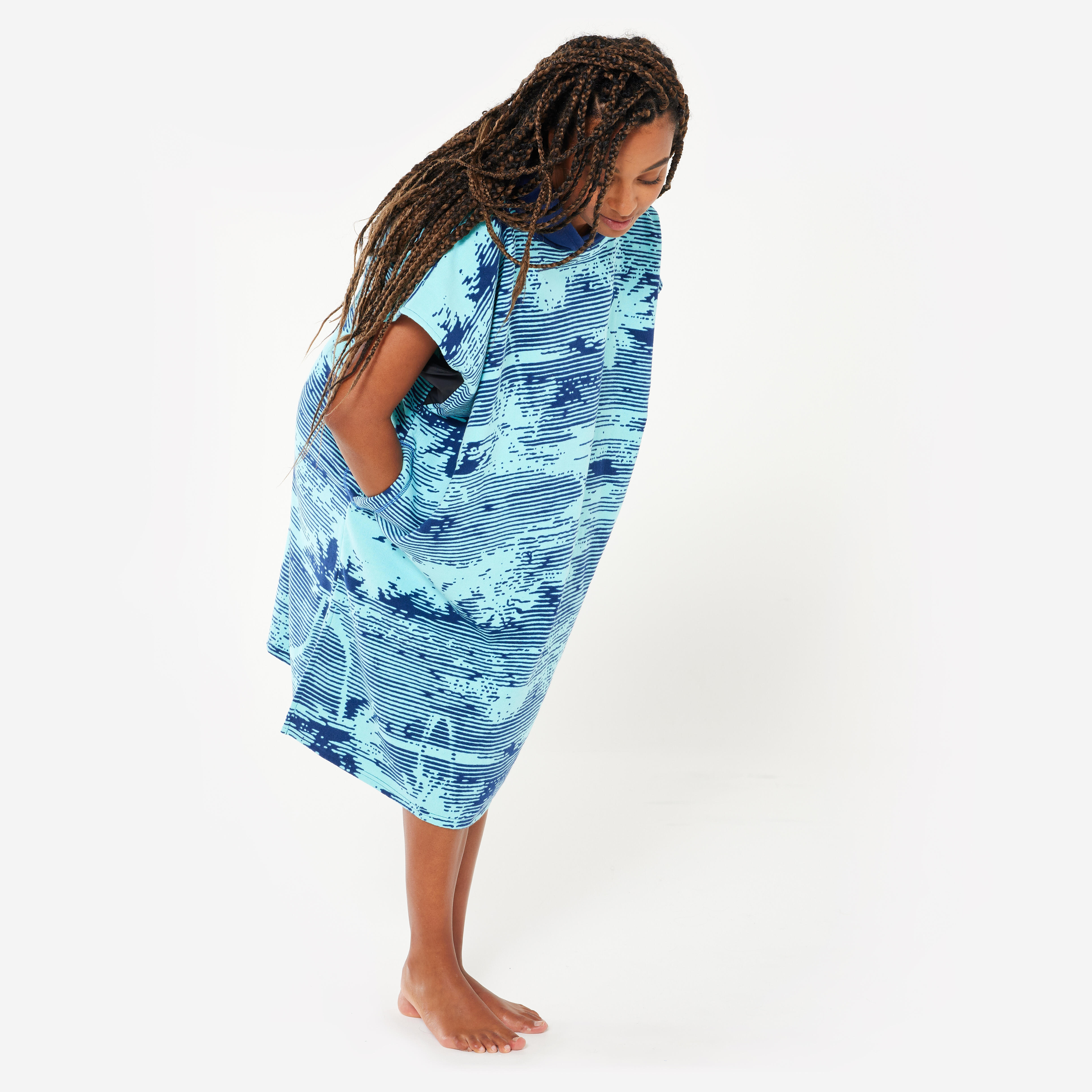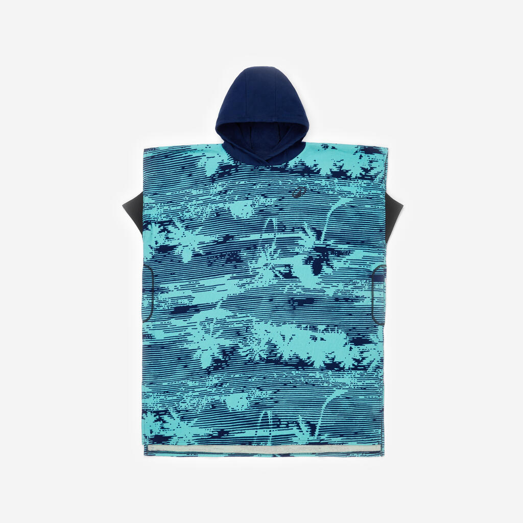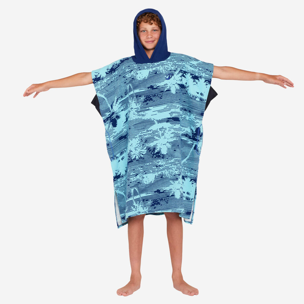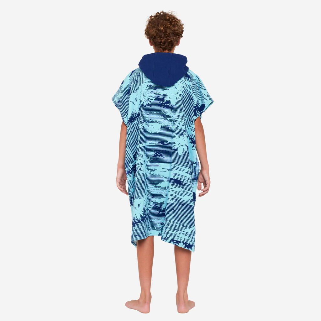 Poncho de surf idéal pour les jeunes surfeurs et surfeuses mesurant de 135 à 160 cm, permettant de se sécher et se changer avant et après leur session de surf.