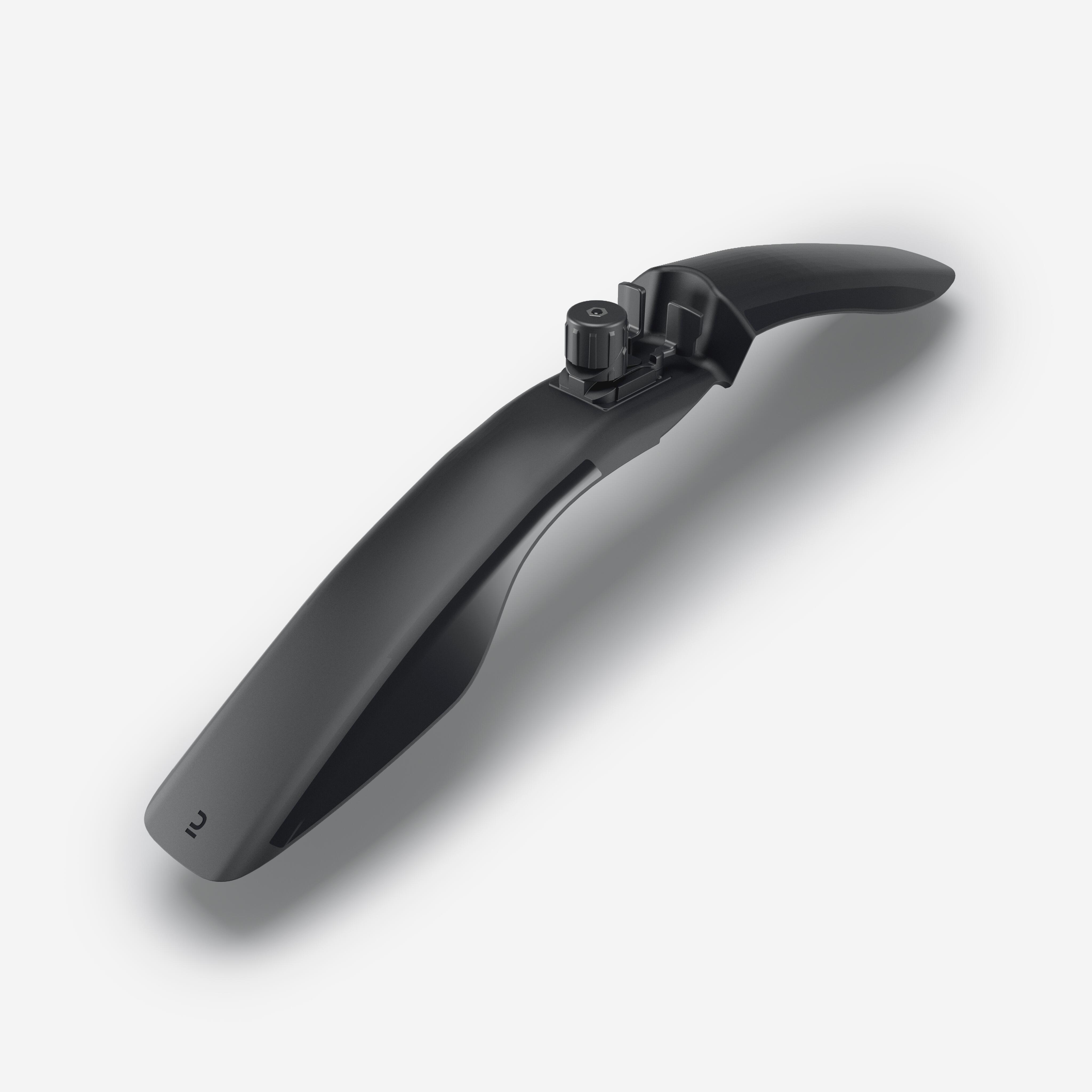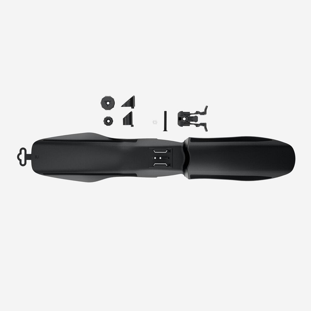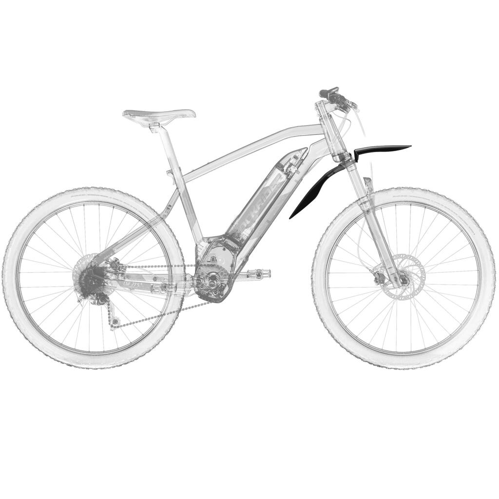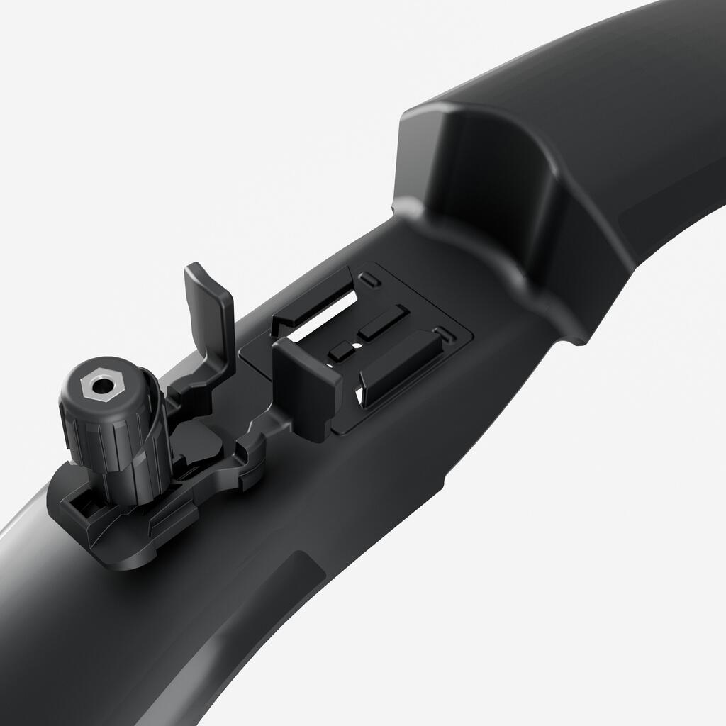 Ce garde-boue avant rigide pour VTT de 26" à 29" protège votre torse et le visage des projections de boue. Clipsé sur une attache vissée, il se monte facilement et reste stable en randonnée.